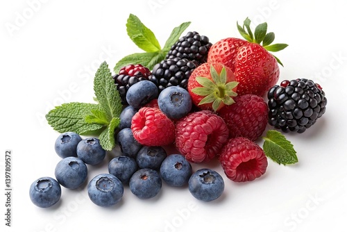 Berries Mix Blueberry Raspberry and Blackberry Isolated on White Background