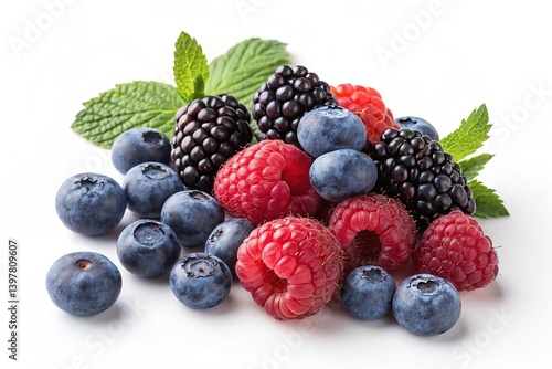 Berries Mix Blueberry Raspberry and Blackberry Isolated on White Background