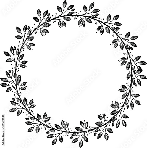 Berry leaf wreath, circular botanical design, decorative nature motif, seasonal vector art, elegant ornament, cad drawing flat vector illustration