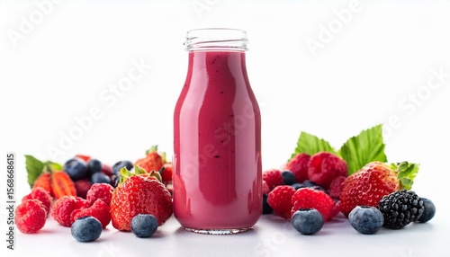Berry smoothie in bottle with fresh berries