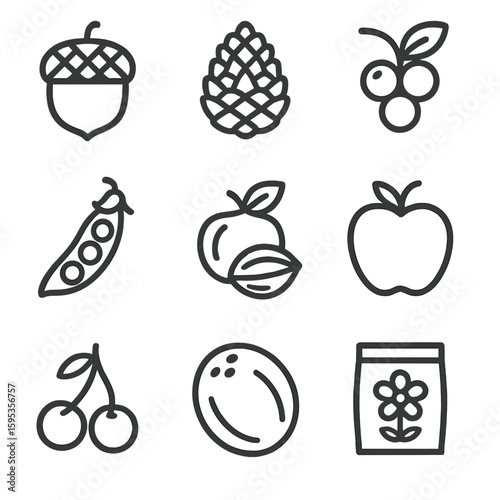Berry vector cone nut apple pea seed packet plant coconut seeds icon
