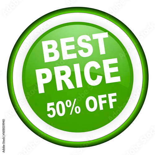 Best Price, 50% Off, Sale: A vibrant circular graphic boldly proclaims Best Price 50% Off, symbolizing exceptional value and significant savings. The design is eye-catching.
