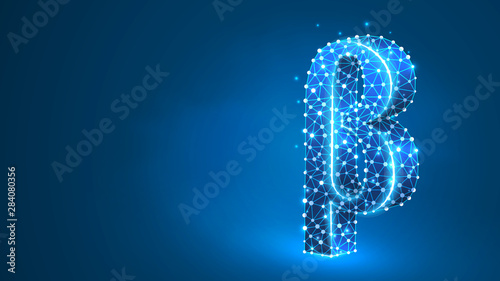 Beta, the second letter of a Greek alphabet. Greek numerals, mathematical number two concept. Abstract, digital, wireframe, low poly mesh, Raster blue neon 3d illustration. Triangle, line dot