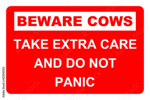 BEWARE COWS DO NOT PANIC SIGN NOTIC
