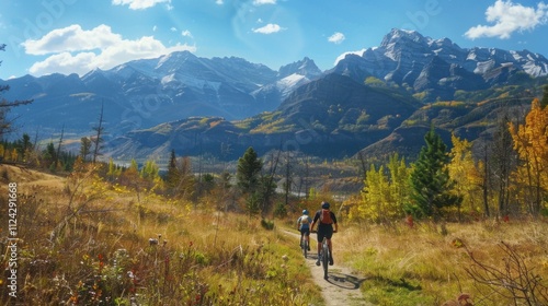 Bicycle hiking travel in the mountains illustration generated by ai