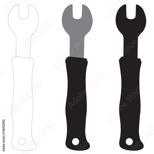 Bicycle wrench in silhouette, two tone, and outline