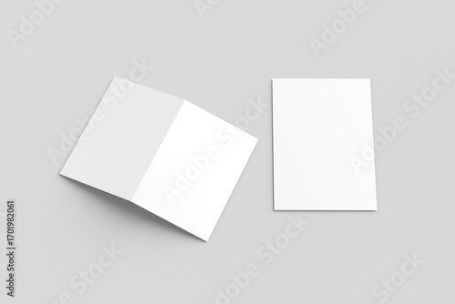 Bi-fold brochure mockup displayed on a plain, light gray surface