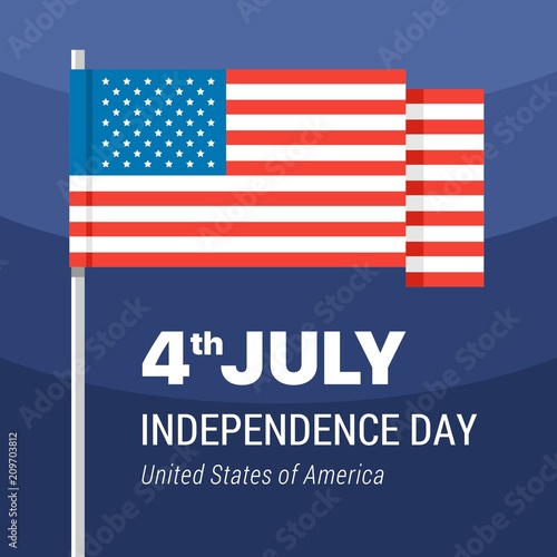 Big American Flag on 4th of July the Independence Day. Flat vector patriotic illustration card
