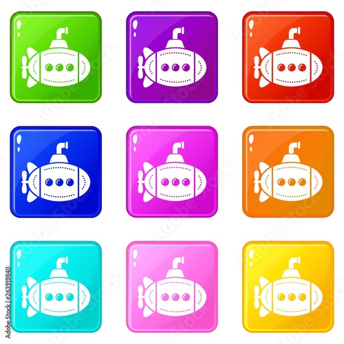 Big bathyscaphe icons set 9 color collection isolated on white for any design