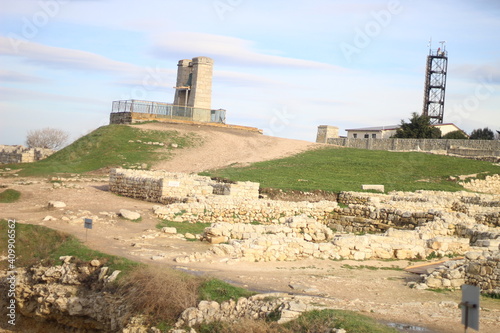 Big bell. Ruins of an ancient Greek city by the sea. Chersonesos. Ancient city. Black Sea.