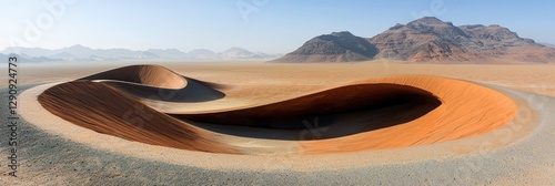 Big, curved sand dunes creating bold, flowing shapes in the barren desert