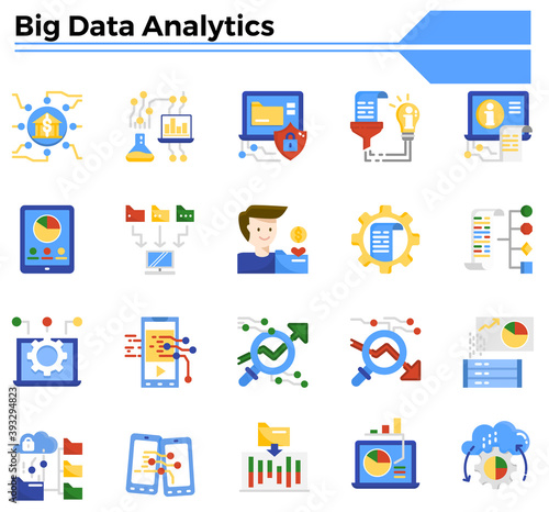 Big data analytics icon set.