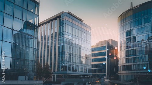 big data connection technology concept, Smart city and abstract dot point connect with gradient line and aesthetic Intricate wave line design ,