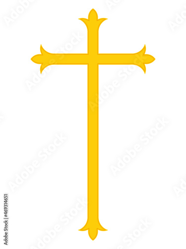 Big fancy golden religious cross icon. Clipart image isolated on white background