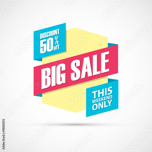Big Sale, this weekend special offer banner, discount 50% off. Vector illustration.