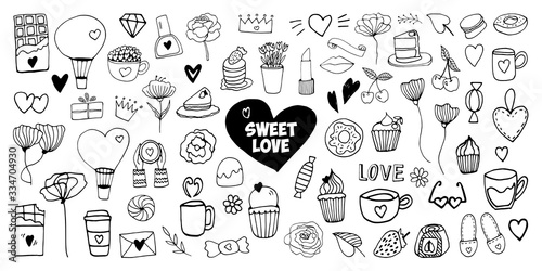 Big set doodle vector elements for valentine's day cards, posters, wrapping and design. Hand drawn heart, isolated on white backdrop. Geometric shape and symbol.