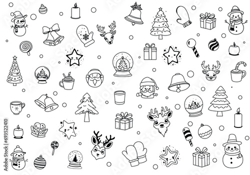 Big set of Christmas design element in doodle style