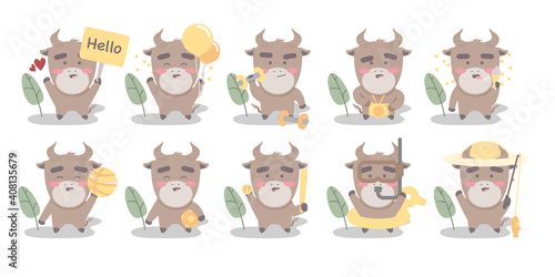 Big set of cute bull character