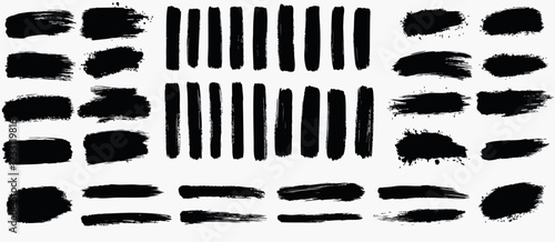 Big set of grunge brush strokes, black lnk textures, Abstract Paint Brushes, Vector Illustration for Design and Art Projects