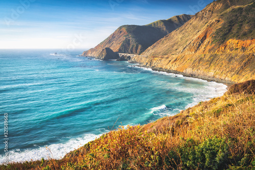 Big Sur, California Coast. Scenic view of cliffs and ocean, California State Route 1, Monterey County