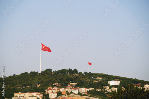 Big Turkish Flag on Camlica Hill in Uskudar İstanbul. Editorial shot in Istanbul Turkey.