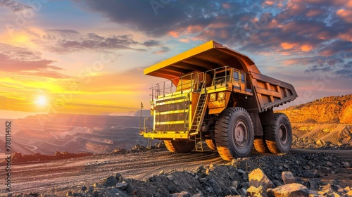Big yellow anthracite mining truck in open pit coal mine industry for efficient coal extraction