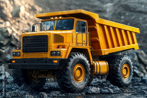 Big Yellow Mining Truck in Anthracite Coal Open Pit Mine Industry. Generative AI