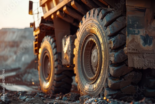 Big Yellow Mining Truck in Anthracite Coal Open Pit Mine Industry. Generative AI