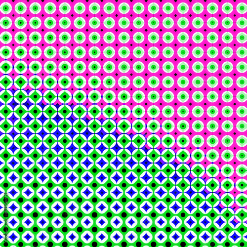 Bight Colorful Retro Pop Art Halftone Circle Dots Pattern Background Design with Gradation of Neon Pink to Green- High resolution illustration for graphic element or backdrop use.
