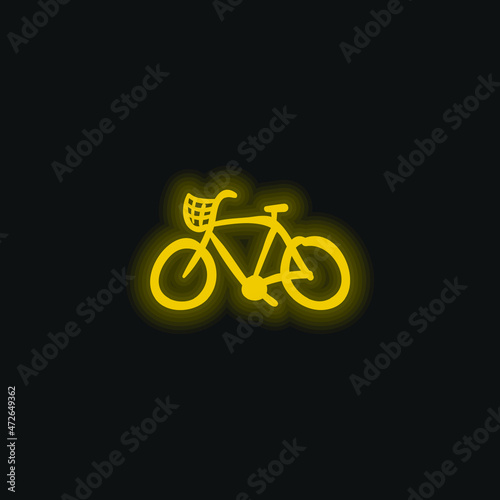 Bike Hand Drawn Ecological Transport yellow glowing neon icon