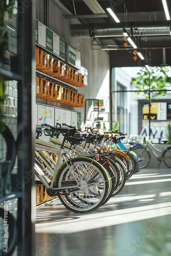 Bike storage at office, neat arrangement, clear signage, ambient lighting, high contrast, vivid colors, detailed illustration, , ing, realistic, high resolution, high detail, h