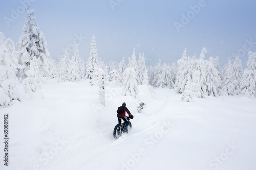 biker in winter, Orlicke Mountains, Czech Republic