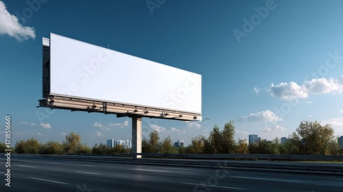Billboard Mockup on Highway Against Blue Sky: Ideal for Advertising Campaigns and Presentations