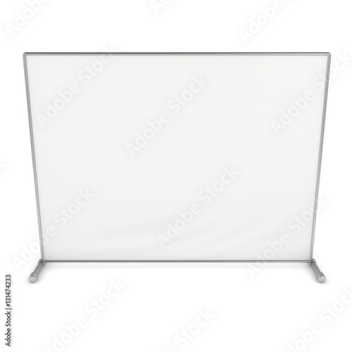 Billet press wall with blank banner. Mobile trade show booth white and blank. 3d render isolated on white background. High Resolution Template for your design.