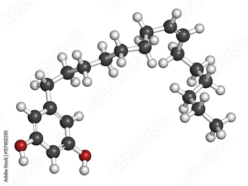 Bilobol ginkgo biloba molecule. 3D rendering. Atoms are represented as spheres with conventional color coding: hydrogen (white), carbon (grey), oxygen (red).