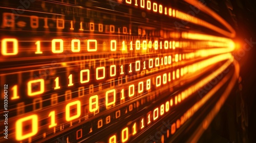 Binary Code Symbol with Glowing Digits and Fluid Background Representing Tech Theme