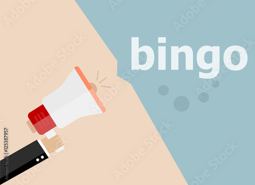 Bingo. Hand holding megaphone and speech bubble. Flat design