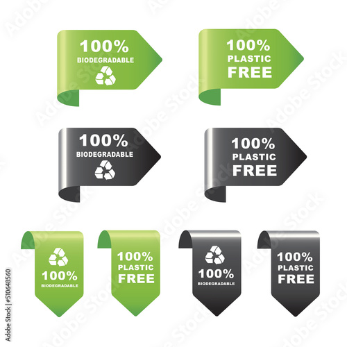 Biodegradable and plastic free icon, sticker product, vector, image.