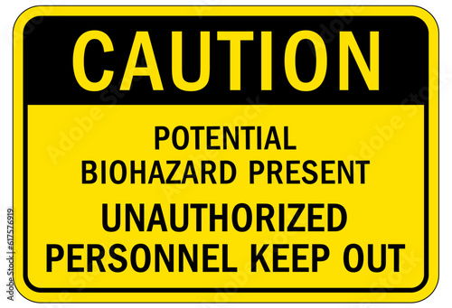 Biohazard warning sign and labels potential hazard present. Unauthorized personnel keep out