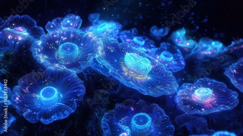 Bioluminescent Coral Reef Glowing in Deep Ocean