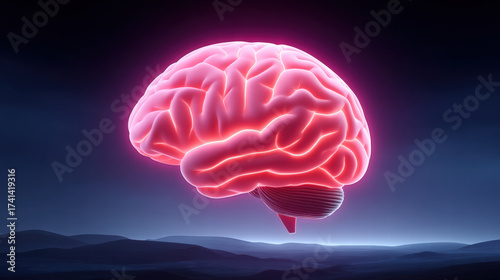 Biotech ai chip connected to 5g brain technology Glowing brain represents biotech ai chip connected to 5g network futuristic