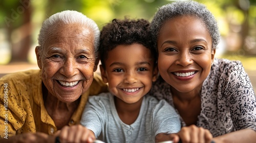 BIPOC elderly couple teaching their grandchildren how to ride bicycles in the driveway Stock Photo with side copy space
