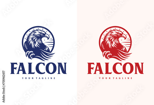 Bird eagle logo design and circle frame, eagle or hawk emblem vector icon