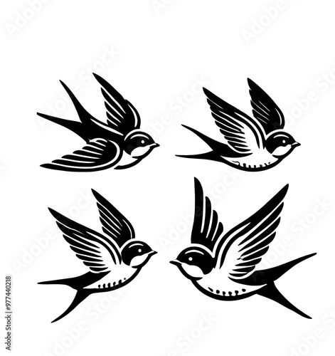 bird flying silhouettes illustration graphic design black and white vector clip art