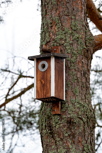 Bird house on tree trunk Kumla Sweden