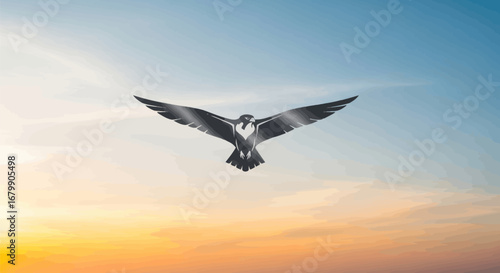 Bird in flight against a colorful sky showcasing freedom and grace.