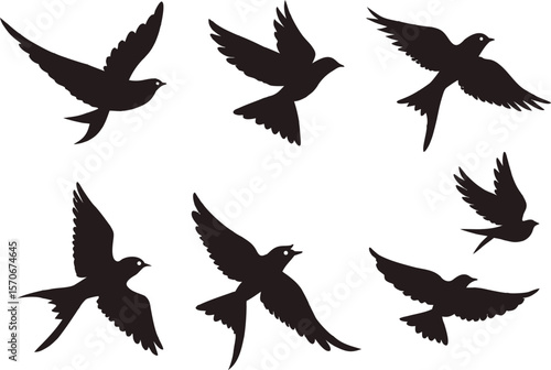 Bird in Flight Silhouette Pack – Hand Drawn Bird Shape Vector for Tattoo, Poster, and Craft