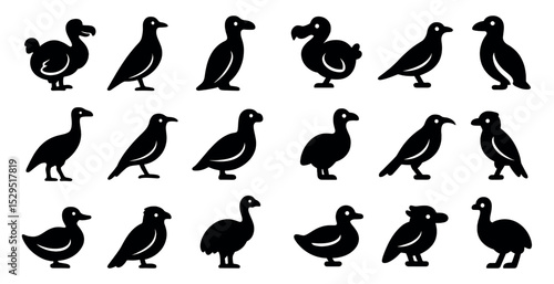 Bird silhouette icons set – filled, solid, avian and wildlife symbols collection