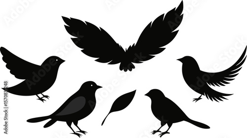 Bird Silhouette Vector Set – Flying and Sitting Birds