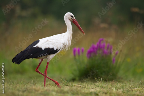 Bird White Stork Ciconia ciconia hunting time in Poland Europe